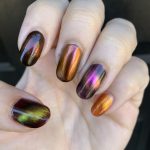 love this one! very shifty and warm toned. it’s perfect for late autumn and gives me all the november vibes. (i accidentally knocked my nail while it was wet so ignore that mark!). it’s on my middle finger and amber is on my pinkie.