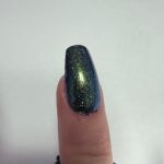 Each stroke of Bundled Up builds a deeper finish, further allowing its unparalleled gleam to come alive in contrast. Watch as waves of color-shifting sparkle embrace your fingertips, ever-changing from vivid green to a softened blue and at times, even easing into a mellow gold.