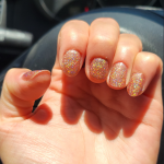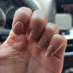 Flaunting an impressive sparkle in the sunlight, Caroline’s copper metallic flakes are complemented beautifully by vivid holographic flakes that stand out against its rosy base! With blends of copper, rose, and gold, Caroline showcases a sunset-reminiscent landscape, sparkling golden hour across your fingertips!