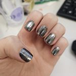 Extremely packed with glitter sparkle, a bit sheer but after 3 coats it’s opaque