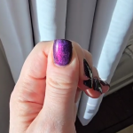 When in the right light the color is a beautiful violet. However most of the time it looks like a weird shimmering brown/gold. It also magnetized very poorly and you can't even tell it's a magnetic polish after it dries. I really wanted it to look like the photos in the sample pictures but sadly it was nothing like that.