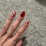 I absolutely love this color! A very cherry red with beautiful sparkles. Takes days to chip off my nails, which is saying something other brands chip the next day.