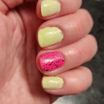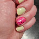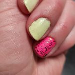Lemon Cake is a deliciously sweet pastel lemon-based speckled nail polish with vivid pink metallic flakes.