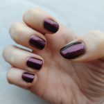A true knockout, Lights Out is a rich black shimmer nail polish with a fiery center.