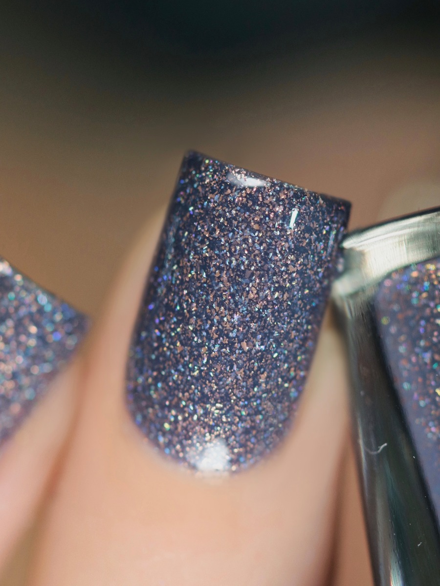 Chateau is a beautifully balanced charcoal grey holographic shimmer.