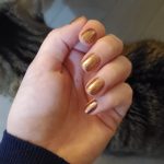 Wow, what a color. She's copper, gold, and pink all wrapped in one, and the formula is extremely smooth and easy to work with. And the metallic shine is out of this world!