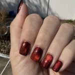 I used the glass bead effect on this one and it’s like my nails are mirroring the lava from Mount Doom every time I move my hand. I LOVE IT. The red is more of a copper in low lighting but it’s still stunning.