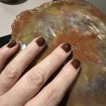This polish has a jelly base with sparkles throughout. I’ve never worn brown polish before, but I’m really loving this color.