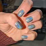 Sticks and Stones is a gauntlet grey holographic nail polish with a subtle brown undertone.