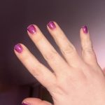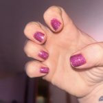 Thee absolute best dark magenta berry color!! I’m inlove. The jelly formula is superb and it’s soooo sparkly. This is after a few days of wear and I am constantly using my hands.